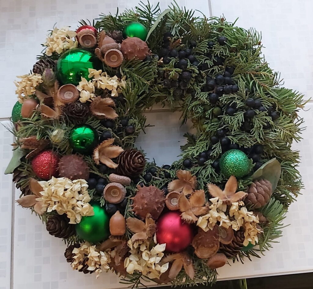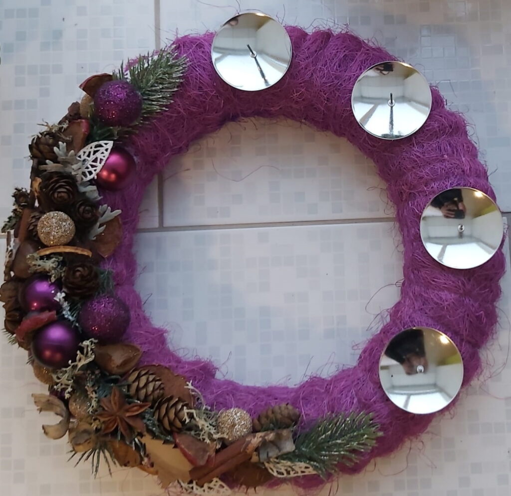 Viņa adventes vainagus darina vairāk nekā desmit gadus. To tapšanā tiek izmantoti galvenokārt dabīgi materiāli, bet ir arī cilvēki, kuri vēlas tieši mākslīgos vainagus, jo tie parasti kalpo vairākus gadus. “Es materiālu sagādi nekad neatstāju uz pēdējo brīdi, tāpēc man krājumos ir kaltēti ziedi, čiekuri, zīles, kastaņi, mandarīnu miziņas un daudz kas cits. Man jau ir atbalstītāji – visas trīs meitas iesaistās darbiņu tapšanā. Kad ejam pastaigāties, vienmēr atrodam ko interesantu. Pat jaunākā – četrgadniece –, ja pamana sūnas vai ķērpjus, vienmēr man piekodina: “Šo paņemsim, mammīt, tas būs vainadziņam!” Šajās dienās kārtīgi sasniga, tāpēc tiem, kas vēl tikai domā doties uz mežu pēc dabas materiāliem, būs jānogaida, kamēr sniegs nokusīs,” saka floriste.