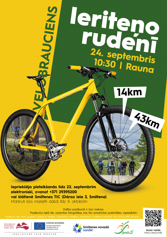 24.septembrī Smiltenes Tūrisma informācijas centrs aicina piedalīties velobraucienā “Ieriteņo rudenī!”, lai atzīmētu aktīvās tūrisma sezonas noslēgumu.