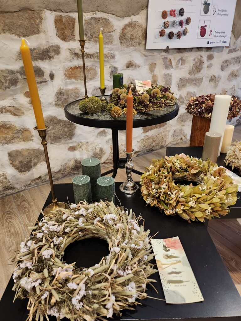 Izstādes galvenais mērķis ir parādīt, cik daudzveidīga un krāsaina var būt daba. Varbūt ikdienas steigā tas paslīd garām un to nemaz neieraugām. Tāpēc izstāde ir tā vieta, kur visu redzēt, atrast laiku piestāt, apskatīt, notvert pozitīvas emocijas. Izstādē apskatāmi gaumīgi adventes vainagi un eglīšu rotājumi no dabas materiāliem. Smilgas, ziedi, odziņas, čiekuriņi – tas viss izraudzīts dabā, ievākts un apčubināts, vēlāk neskaitāmas reizes piemērīts, komplektēts ar kādu košumiņu, cenšoties atrast saskaņu un radīt īsto noskaņu. Pērn šāda izstāde bija aizceļojusi uz Mēru muižu. Nu tā ir atradusi savu vietu Apē.