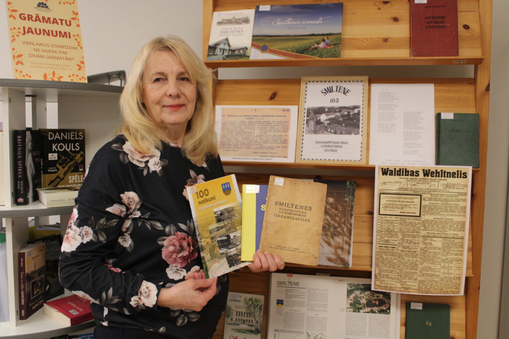 Ekspozīciju papildina arī mūsdienu izdevumi, piemēram, “100 notikumi Smiltenes vēsturē”, “100 stipri stāsti”, Kornēlijas Apškrūmas dzejas krājums “Smiltenei”.