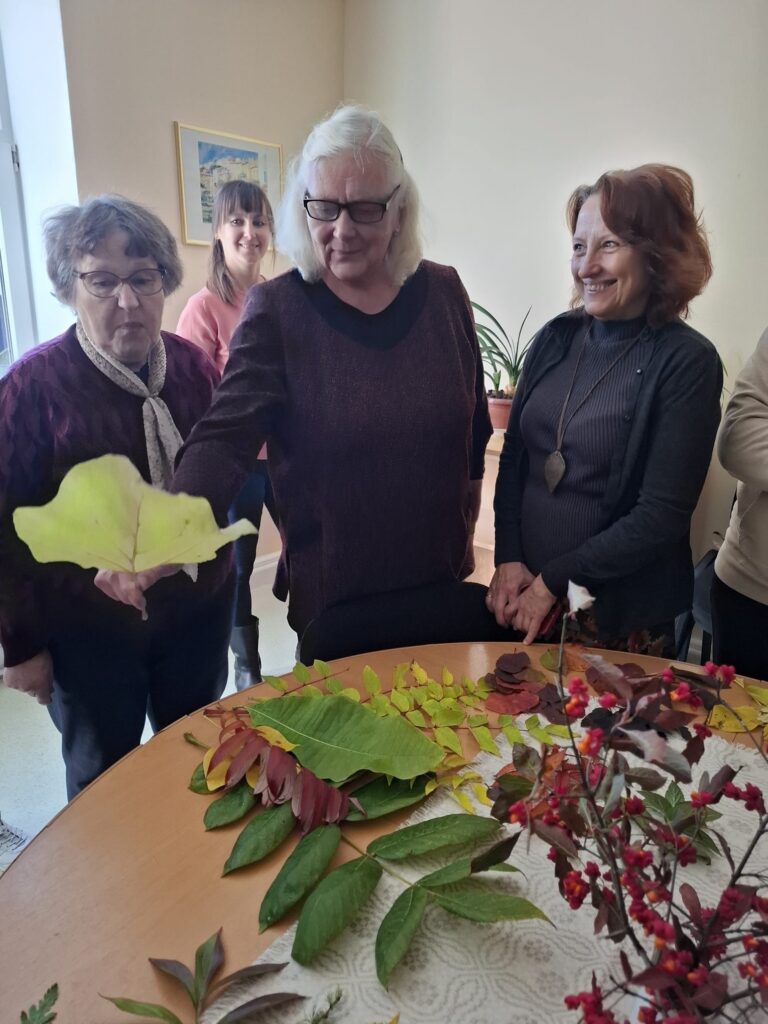 Kārķos dārzkopības projekta “Pats savam SAIMES GALDAM” noslēguma pasākumā katrs nāca ar kādu sagatavotu ziemas krājumu velti un ar skaistām rudens koku un krūmu lapām, kas pa visiem bija jāatpazīst.