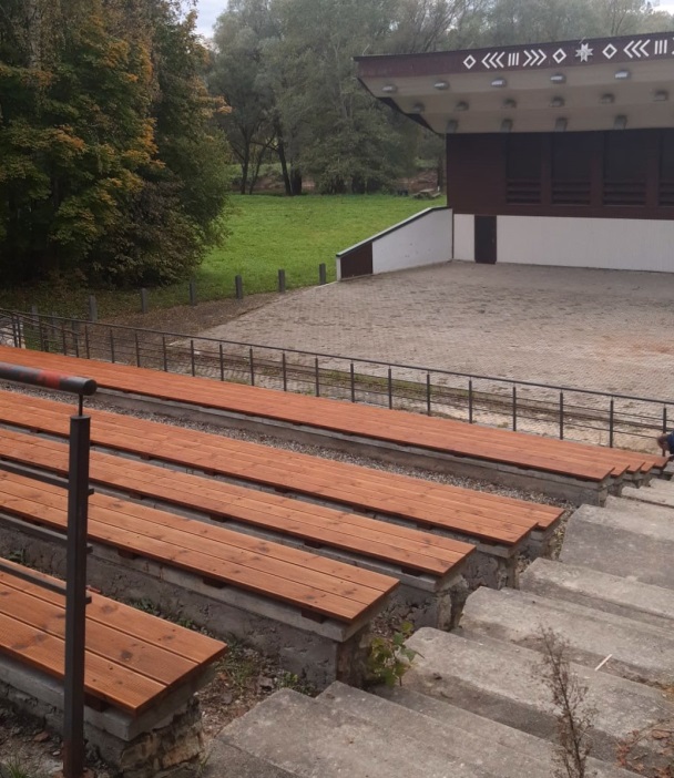 “Projekta īstenošanas rezultātā tika veikta skatītāju zonas soliņu un teritorijas soliņu virsmas atjaunošana, izmantojot ilgtspējīgus un videi draudzīgus materiālus, radot vienotu estētisku kopskatu,” informē I. Punkstiņa.