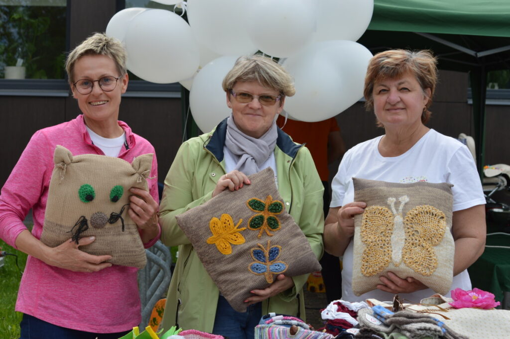 Sniedzot labas emocijas rīkotājiem un apmeklētājiem, Smiltenē 1. jūnijā noslēdzās ikgadējā labdarības akcija “Balta, balta mana sirds”, kurā tiek vākti ziedojumi Smiltenes novada bērniem ar īpašām vajadzībām. Ziedot var, arī iepērkoties labdarības tirdziņā, ko ik gadu organizē smiltenietes Inguna Slapjuma (no kreisās), Maruta Vīgante un Gunta Mežule un kuram dažādus rokdarbus atvēl vietējie iedzīvotāji. Foto: Sandra Pētersone