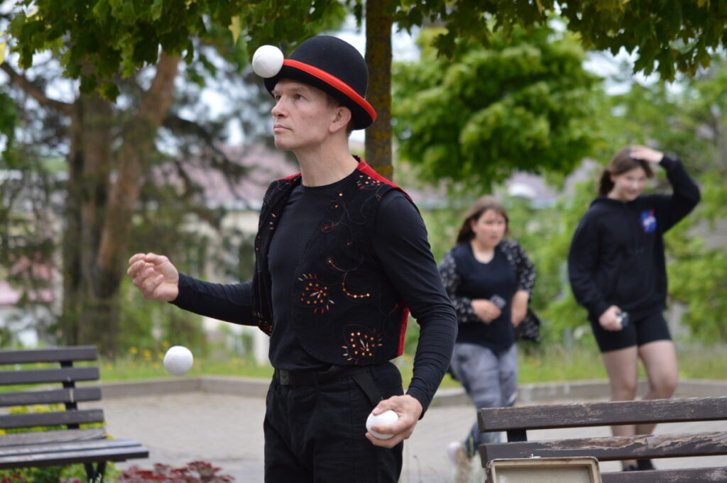 Par Rīgas cirka žongliera Dmitrija Pudova priekšnesumiem bērni bija sajūsmā, tas Smiltenē bija kas neredzēts. Foto: Sandra Pētersone