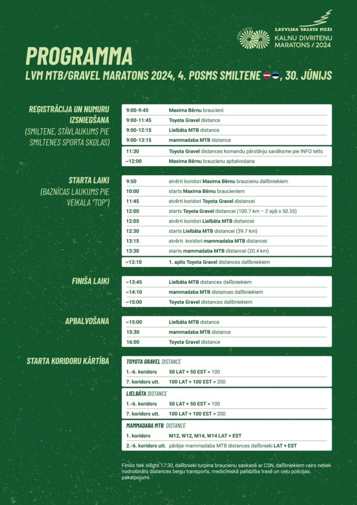 Svētdien, 30. jūnijā, Smiltenē norisināsies Latvijas valsts mežu MTB un Gravel veloseriāla ceturtais posms, kā arī vadošā Igaunijas velo seriāla “Estonian Cup” trešais posms. Vēršam iedzīvotāju uzmanību – jau no 29. jūnija vakara būs ceļu satiksmes organizācijas izmaiņas Smiltenes centrā.