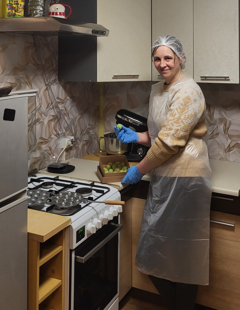 Sanita Kubuliņa ikdienā bieži rosās virtuvē. Visbiežāk gatavojot dažādus miltu izstrādājumus – kūkas, riekstiņus, sēnītes un cita veida cepumus. Lai savu produkciju varētu piedāvāt plašākam klientu lokam, kļuvusi par mājražotāju.