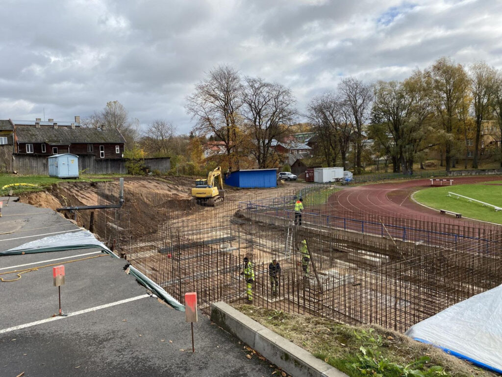 Jaunās sporta skolas ēkas būvniecības darbus uzsāka šopavasar, taču pēdējā laikā būvlaukumā valda klusums. Pašvaldības būvniecības un plānošanas dienesta vadītājs Urmass Meldre skaidroja, ka iemesls saistīts ar būvuzņēmumu “Rennes OÜ”.