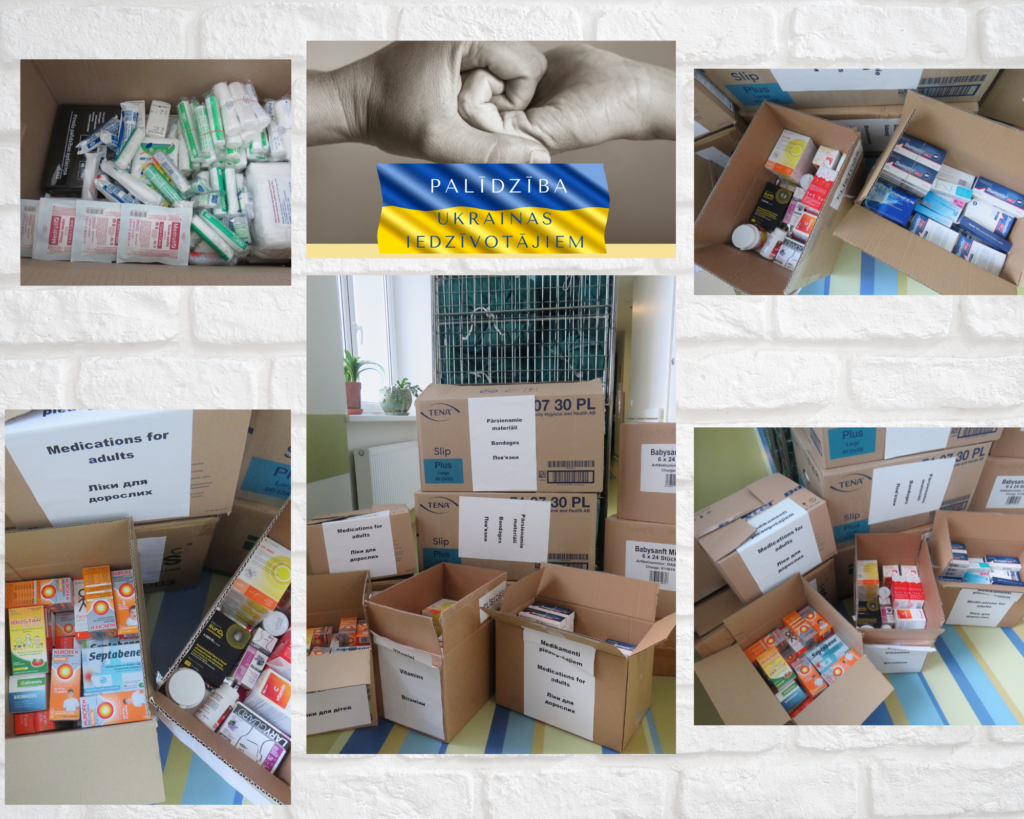 Dažās dienās padsmit kastes pilnas ar medikamentiem, ar pārsienamajiem materiāliem un aptieciņām – Vidzemes Slimnīca darbinieki tā pauž savu atbalstu Ukrainas iedzīvotājiem. No slimnīcas – segas pieaugušajiem un bērniem.