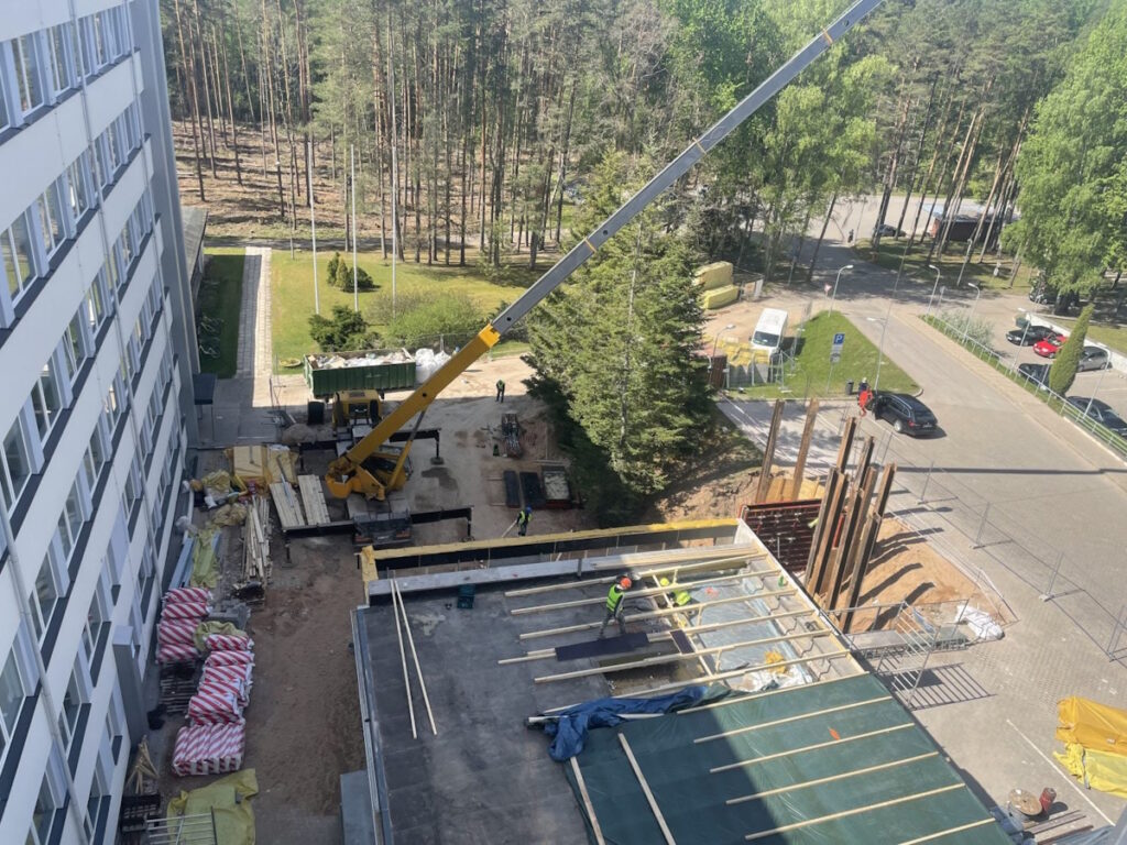 Pašreiz turpinās telpu apdare, grīdas seguma ieklāšana, medicīnisko konsoļu, gaisapstrādes iekārtu montāža, inženierkomunikāciju izbūve un māsu izsaukumu sistēmas ierīkošana. Projekta ietveros ir uzsākti arī labiekārtošanas darbi.