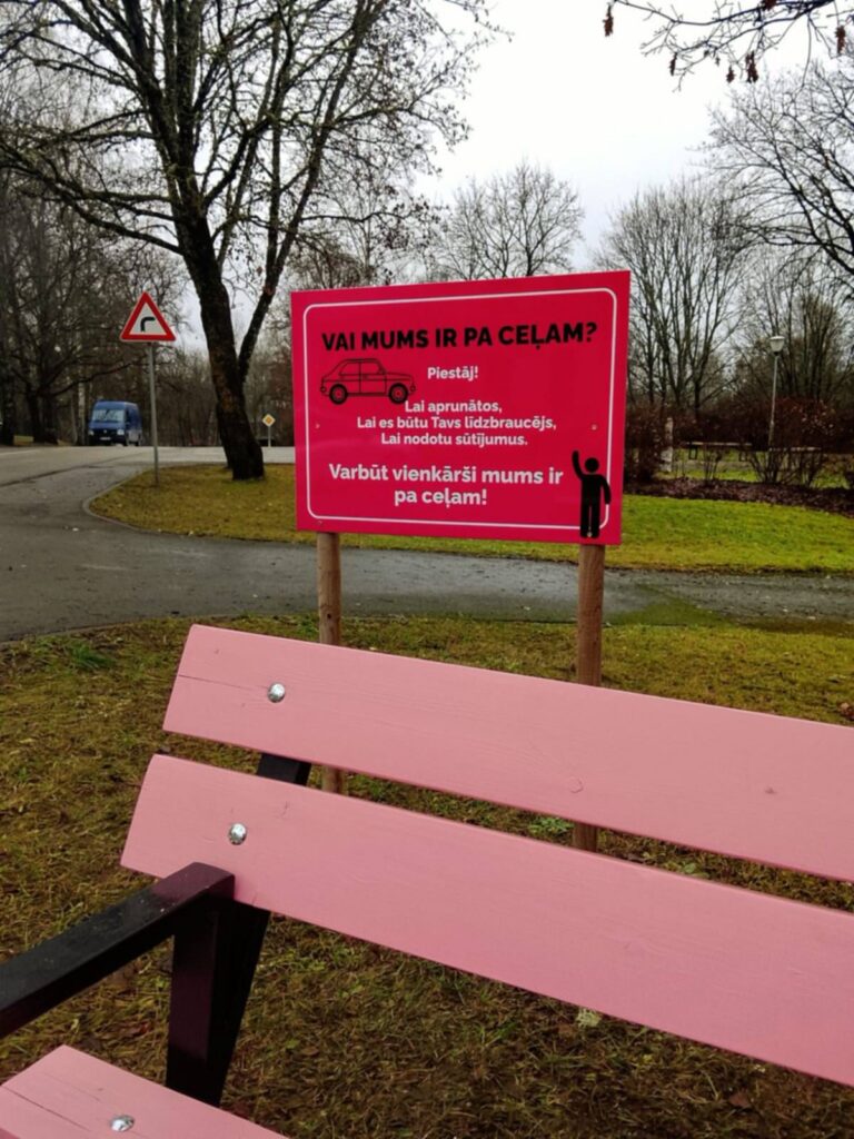 “Ja cilvēks ir šajā pieturā, tad autobraucējs viņu var aizvest uz Valku vai Rūjienu vai kādu vajadzīgo ceļa posmu šajā virzienā. Var arī sarunāt aizvest sūtījumu vai nogādāt līdz Kārķiem. Varbūt pieturā stāvošajam ir vēlme pa ceļam vienkārši aprunāties. Laukos transports ir tik, cik tas ir. Ir cilvēki, kuriem ir kauns pajautāt un uzprasīties par līdzbraucēju. Šādos gadījumos viņam ir iespēja aiziet uz šo rozā pieturu, tā signalizējot par savu vajadzību. Lai mums visiem kopā izdodas. Rīgā biežākā satikšanās vieta ir Laimas pulkstenis, mums – rozā soliņi,” ir gandarīts pagasta pārvaldnieks.