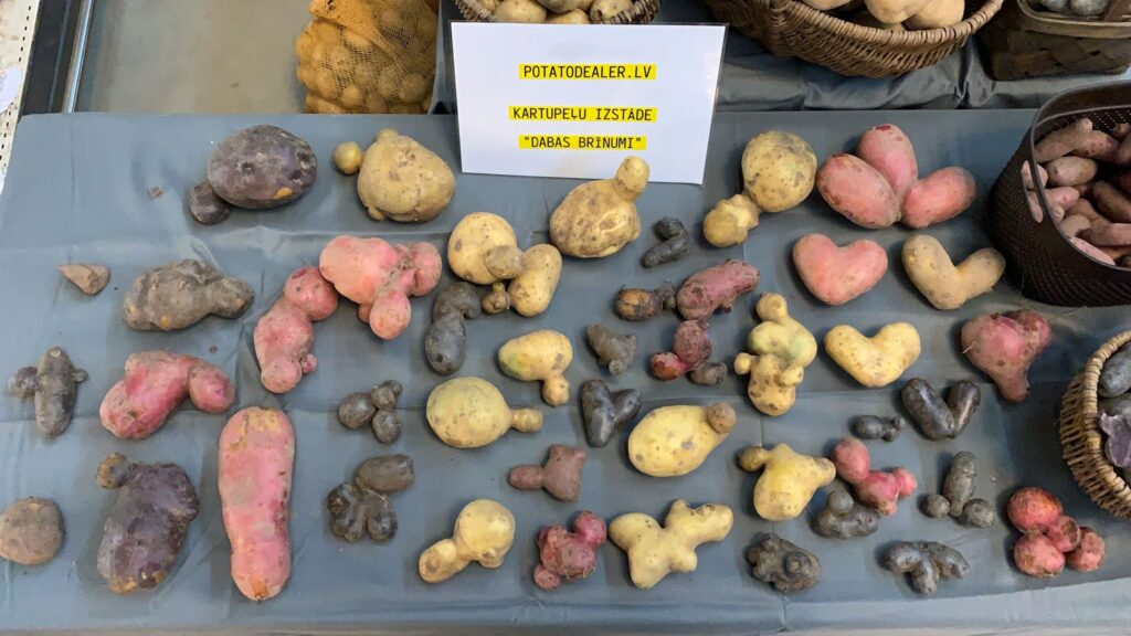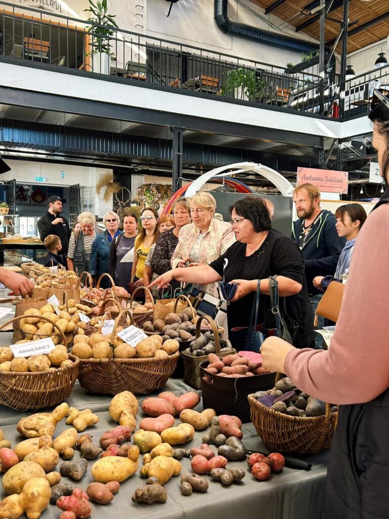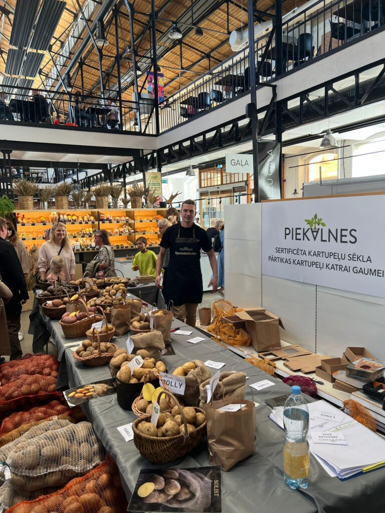 Tirgus apmeklētāji tika iepazīstināti ar tādām sertificētām ēdamo kartupeļu šķirnēm kā ‘Solist’, ‘Adorata’, ‘Paroli’, ‘Soraya’, ‘Mia’, ‘Nixe’, ‘Wega’, ‘Baltic Rose’, ‘Baltic Fire,’ ‘Birgit’, ‘Linus’, kā arī vairākām citām rozā, lillā, kartupeļiem, kas ir ar zemu glikēmisko indeksu. Bet kā viens no jaunumiem, kas tika prezentēti tirgū, bija šķirnes ‘Linus’ kartupeļi, kas ir īpaši veiksmīgs risinājums, ja vēlas pagatavot kraukšķīgus un gardus frī kartupeļus.