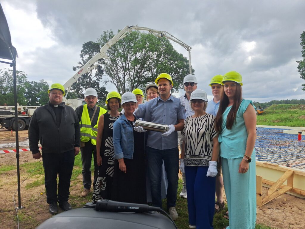 Zīmīgajā brīdī – topošās senioru mājas laika kapsulas iemūrēšanas pasākumā – piedalījās RELD padome un valde, sadarbības partneri, “Pansijas Rauna” darbinieki, Smiltenes novada pašvaldības, Raunas draudzes un citi pārstāvji.