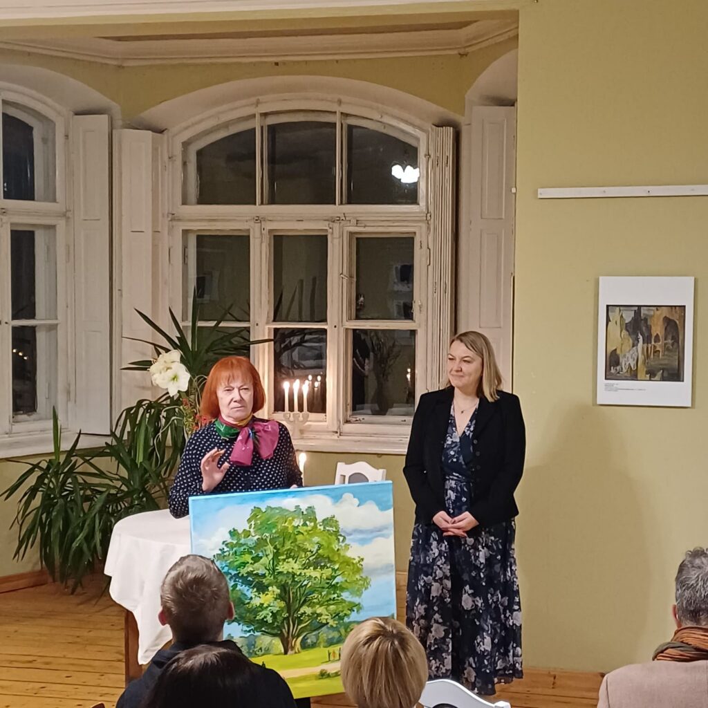 Jāpiebilst, ka Smiltenes novada muzejam izveidojusies cieša un sirsnīga sadarbība ar Rīgas Latviešu biedrības mākslinieku grupu, kuras vadītāja ir Gunta Brakovska. Šī sadarbības pamati tika ielikti 2023. gadā, organizējot pie mums izstādi kā veltījumu Ukrainai. Tā, blakus Latvijas un Ukrainas māksliniekiem, Guntas Brakovskas gleznā nemanāmi ienāca Mēru dižozols, kas savu dižuma gājienu sāka gadu vēlāk muzeja rīkotajā dižkoku dienā, atkal sagaidot pie sevis mākslinieci un profesionālus, ilggadējus dižkoku pētniekus un aizstāvjus – Gunti Eniņu un Andreju Svilānu, bet gadu vēlāk, novada un Latvijas ļaužu atbalstīts, kļuva par Eiropas gada koku Latvijā. 5. decembrī pasākuma laikā māksliniece Gunta Brakovska dāvināja muzejam ozola gleznu vēlreiz – šoreiz ozols stāv citā dižumā un gadalaikā blakus 2023. gadā gleznotajam un ledainajā salnā cietušajam Mēru muižas parka dižkokam. Tādējādi muzeja gleznu kolekciju papildinājuši gan mākslinieciski, gan finansiāli augstu novērtēti mūsdienu mākslas darbi.
