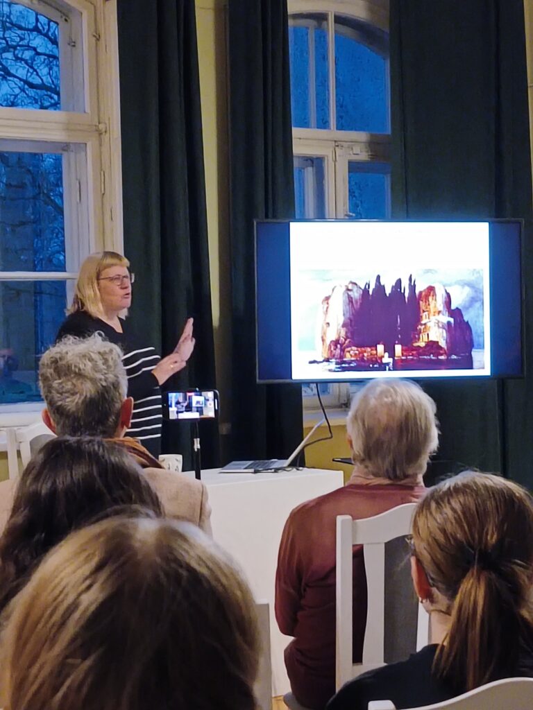 Apvienojot abu šī brīža izstāžu mākslas pasauli, izglītojošā pasākuma laikā aicinājām uz diviem priekšlasījumiem. Par Rūdolfa Pērles daiļradi un simbolismu Eiropas un Latvijas mākslā stāstīja mākslas vēsturniece Dace Vosa, Jaņa Rozentāla un Rūdolfa Blaumaņa memoriālā muzeja vadītāja. Savukārt par Laines Kainaizes mākslas redzējumu, Vidzemes ainavas gleznojot, par mākslinieces dzīves gājumu un dalību daudzās, tajā skaitā starptautiskās izstādēs, klātesošajiem stāstīja māksliniece Gunta Brakovska, Rīgas Latviešu biedrības vizuālās mākslas komisijas vadītāja.