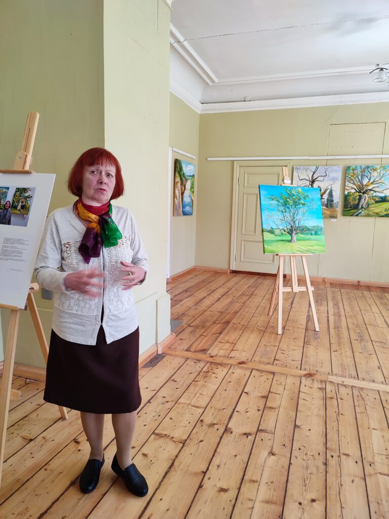 Viņa atminas, ka pērn 20. maijā bija ieradusies Smiltenes novadpētniecības muzejā Mēru muižā uz izstādes “Ukrainas uzvarai” atklāšanu, tad arī pirmoreiz mūžā ieraudzījusi Latvijas un Baltijas viskuplāko ozolu – Mēru dižozolu. “Togad vēlā pavasara un bargo salnu dēļ Mēru dižozola plaukstošās lapiņas bija apsalušas. Taču varenais skaistulis lepni slēja savus spēcīgos zarus pret sauli. Tādu es viņu arī attēloju gleznā “Mēru dižozols maijā”,” saka māksliniece.