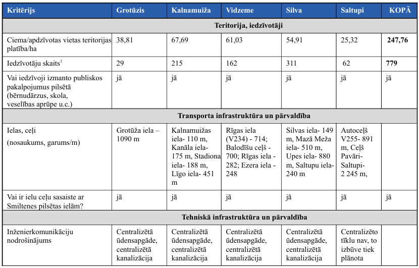 1. Tabula. Smiltenes pilsētai pievienojamo ciemu izvērtējums
