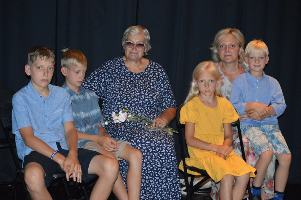 FOTO: Uz atceres pasākumu un grāmatas atvēršanu ieradās arī mākslinieka sieva Gunta Štelce, meita Anete Janovska un viņas bērni Līva, Dominiks, Toms un Rūdolfs. Aiz sevis Aldis atstājis arī dēlus Jāni un Gintu. FOTO: SANDRA PĒTERSONE