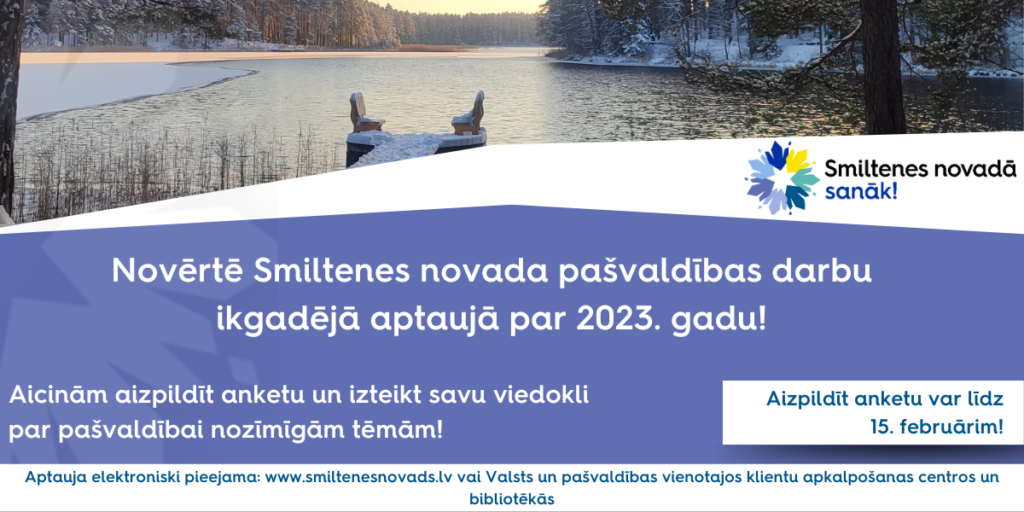 No 2024. gada 1. februāra līdz 15. februārim aicinām iedzīvotājus izteikt viedokli par Smiltenes novada pašvaldības, tās iestāžu un struktūrvienību darbu, dzīves un pakalpojumu kvalitāti. Iedzīvotāju iesaiste ir svarīga pašvaldības ikdienas darbā un plānošanas procesā, tāpēc aicinām būt aktīviem un līdzdarboties.