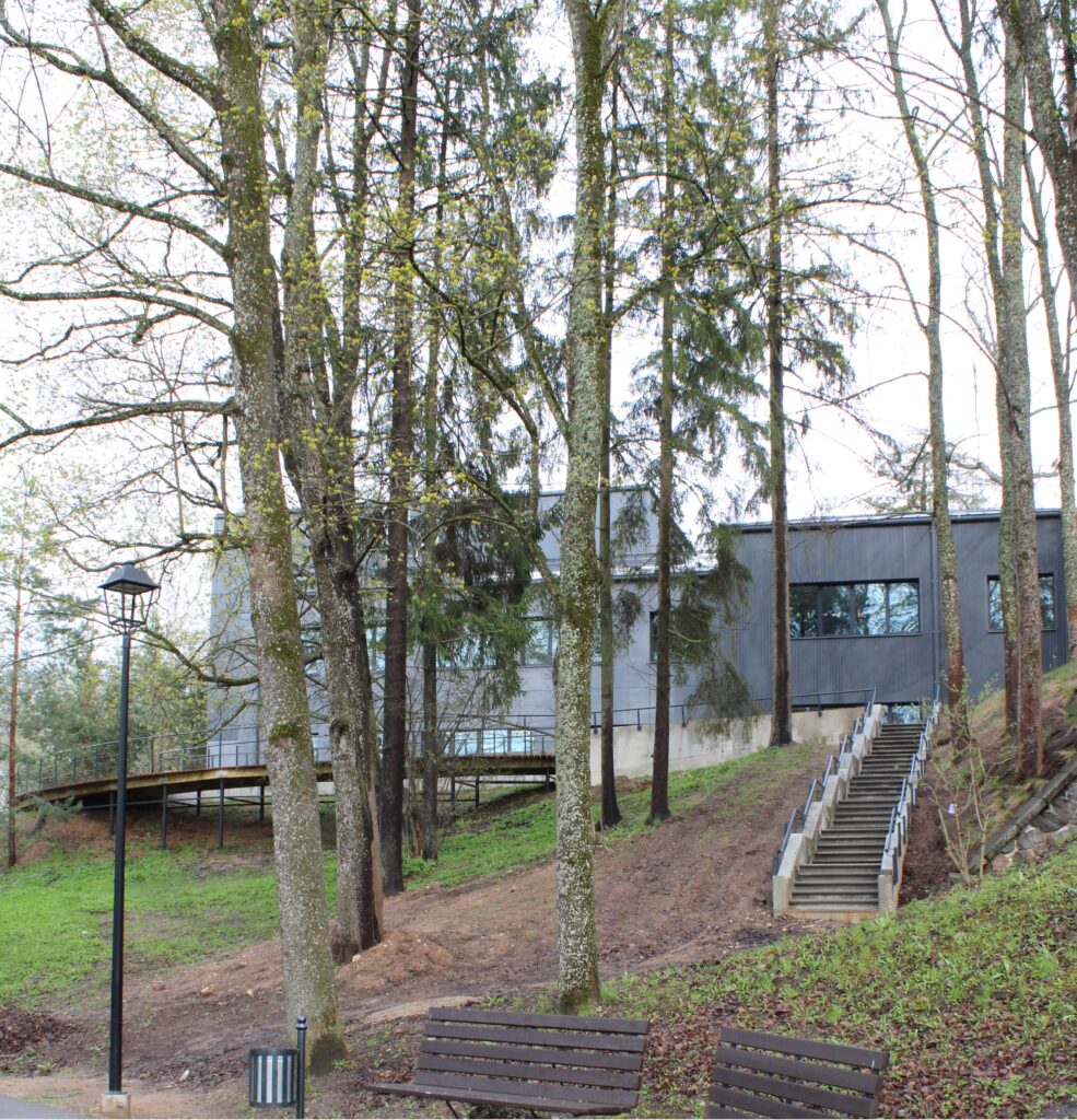 Līdz galam nepabeigtā būve arī nedara pievilcīgu citādi sakopto ainavu, – netālu, pie gājēju tilta, ir ierīkota omulīga atpūtas vieta ar diviem soliņiem, bruģētu laukumiņu, atkritumu urnu un laternu.