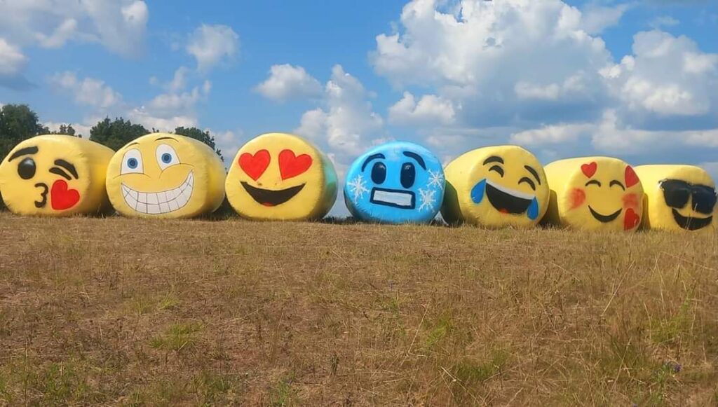 Smiltenes novadā pie A2 šosejas Apes virzienā, pagriezienā uz Mēriem, lauka vidū ir parādījušies emoji – emocijzīmes. Garāmbraucēji ir priecīgi par šādu ideju – piestāj un labprāt tur bildējas.