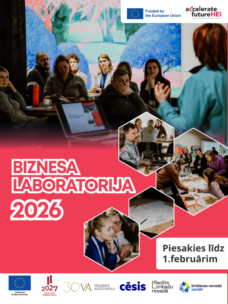Smiltenes novada jaunieši, jaunie uzņēmēji un biznesa ideju autori aicināti līdz 1. februārim pieteikties bezmaksas apmācību ciklam “Biznesa laboratorija 2026”, kas sniedz praktisku atbalstu pirmajiem soļiem uzņēmējdarbībā un ideju pārvēršanai dzīvotspējīgos biznesa projektos.
