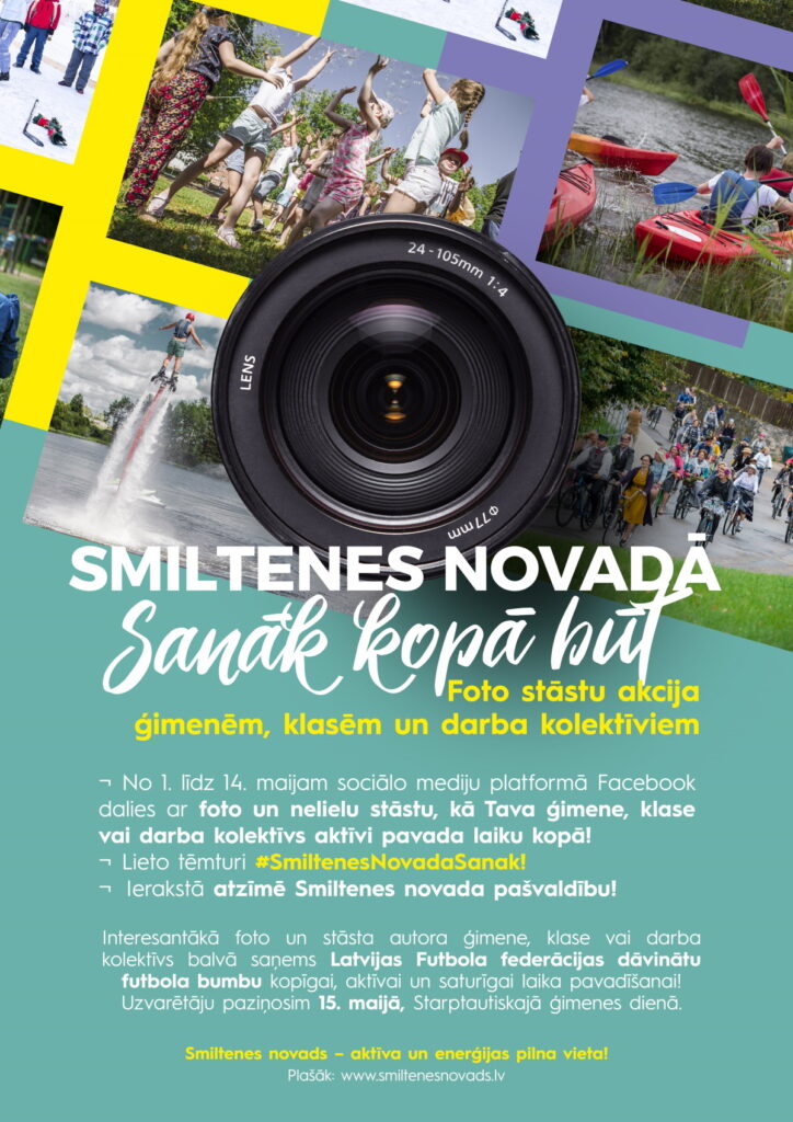 No 1. līdz 14. maijam Smiltenes novada pašvaldība aicina piedalīties foto stāstu akcijā “Smiltenes novadā sanāk kopā būt!”. Akcija norisināsies sociālo mediju platformā “Facebook”, un tajā aicinātas piedalīties ģimenes, klases un darba kolektīvi.