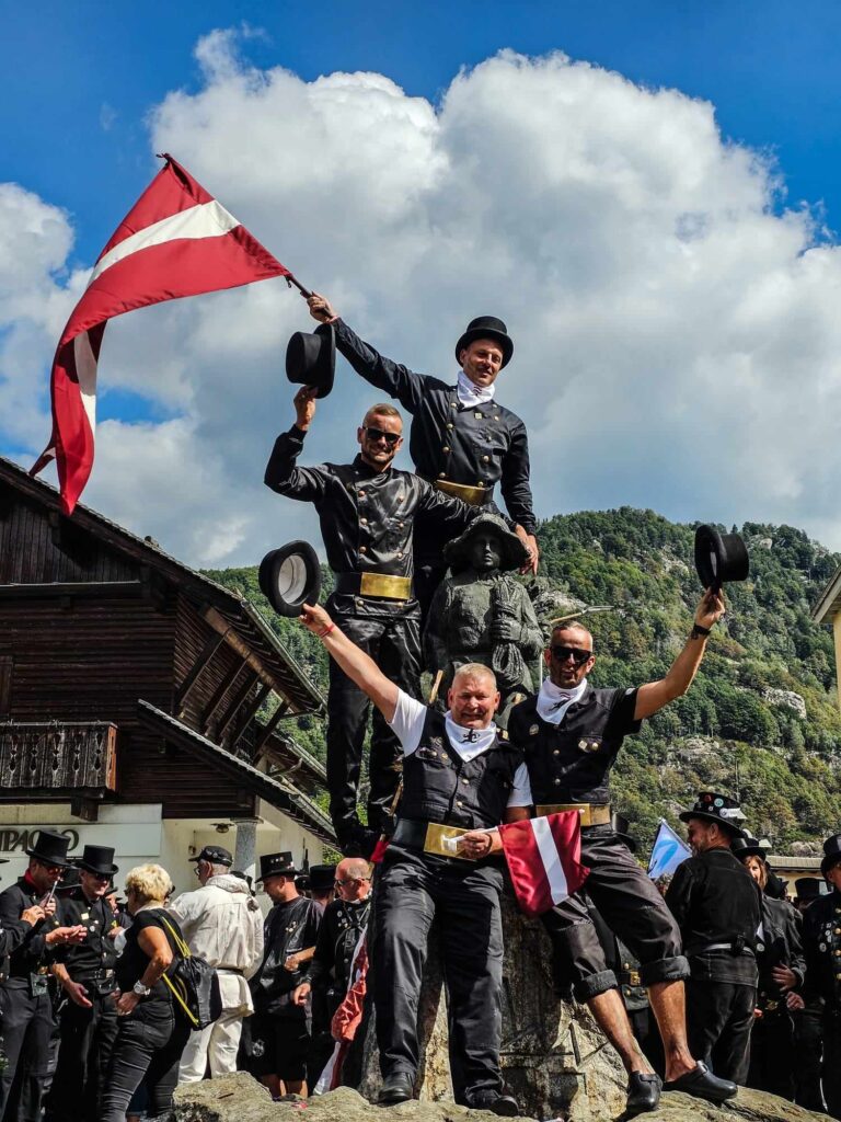 Latviju šogad saietā pārstāvēja četri mūspuses skursteņslaucītāji – Latvijas Amatniecības kameras skursteņslauķu amata meistars, trapenietis Raitis Zariņš kopā ar trim amata brāļiem – Agri Plešu, Mārtiņu Larionovu, Aivaru Reisonu –, kuri principā arī ikdienā kopā strādā. Savulaik viņš pats tos arī apmācījis, divi no viņiem šobrīd jau ir amata meistari, bet viens zeļļa amatā. Līdz ar to uz saietu devās kā komanda, līdzi ņemot arī savas otrās pusītes.