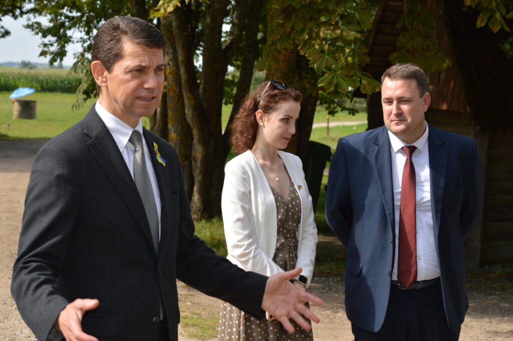 Kopā ar Oleksandru Miščenko darba vizītē Smiltenes novadā ieradās vēstnieka pirmais sekretārs Leonīds Hrebenniks un Ukrainas vēstniecības Latvijā vēstnieka asistente kultūras un preses jautājumos un tulce Viktorija Prituļaka.