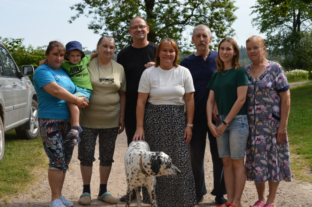 Lauku mājas “Kalbakas” saimnieki Līga un Ints Augas (vidū) šobrīd izmitina divas ukraiņu ģimenes, kas viņiem ir ļoti pateicīgas par sirsnību un atbalstu. Uz fotografēšanos no deviņiem bēgļiem varēja ierasties Jeļena Kurzina (no kreisās), trīsgadīgais Ņikita, Tatjana Solomaha, Andrejs