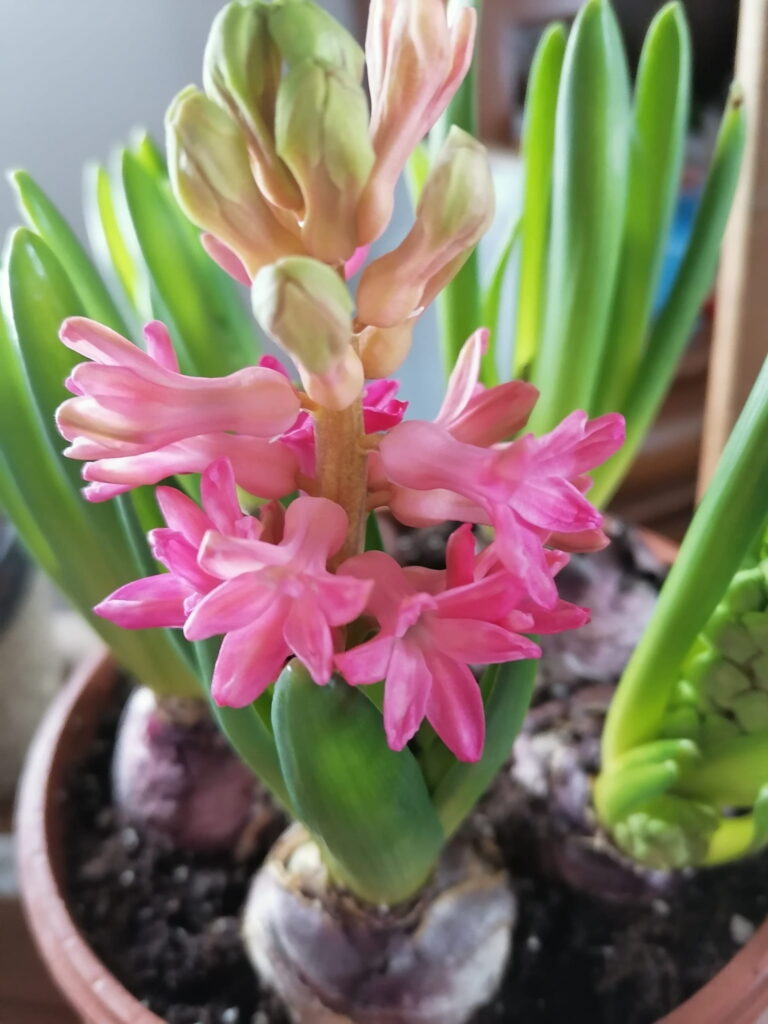 Viņa stāsta, ka lielveikalos hiacintēm visbiežāk netiek nodrošināti tie pienācīgākie apstākļi, jo tām patīk gan mitrums, gan gaisma, un tā kā ar dabīgo apgaismojumu tur sīpolpuķes nodrošināt grūti, par to svarīgi atcerēties, kad augs jau nonācis mājās. “Vislabāk plaukstošos stādus likt vietā, kur tos apspīd dienas gaisma. Vēl labāk, ja šī vieta ir vēsa, tad hiacintes izziedēs lēnāk, toties atrādīs daili ilgāk. Ziemā istabā gaisa temperatūra turas līdz +20 grādiem. Tā ir optimālā temperatūra un hiacintēm patīk,” novērojusi puķkope.
