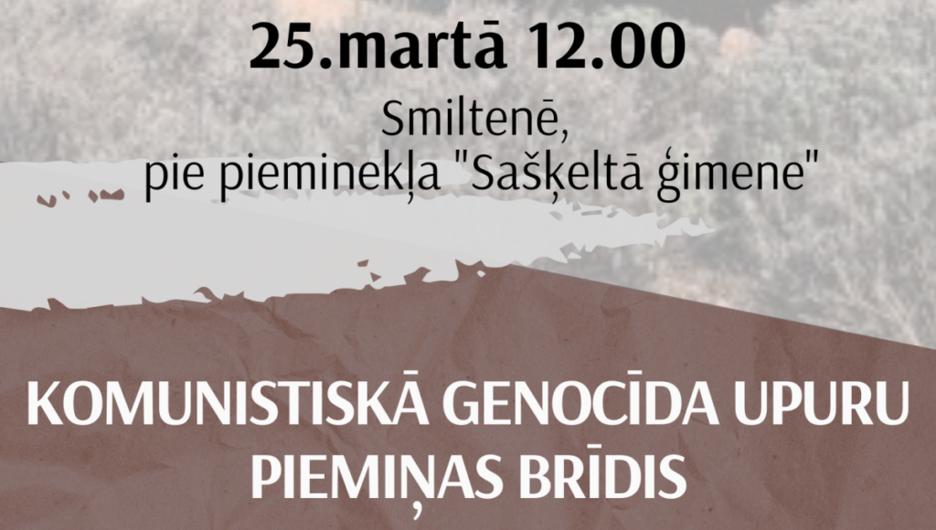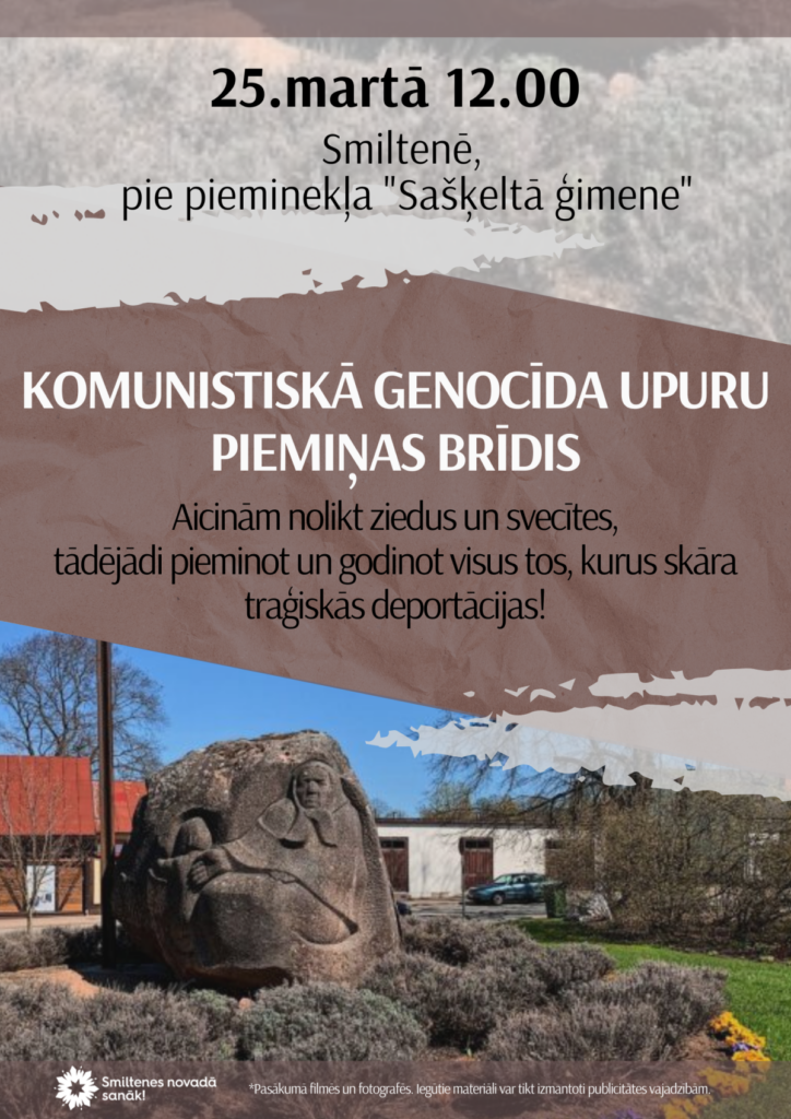 25.martā pulksten 12.00 Smiltenē, pie pieminekļa “Sašķeltā ģimene”, notiks komunistiskā genocīda upuru piemiņas brīdis.