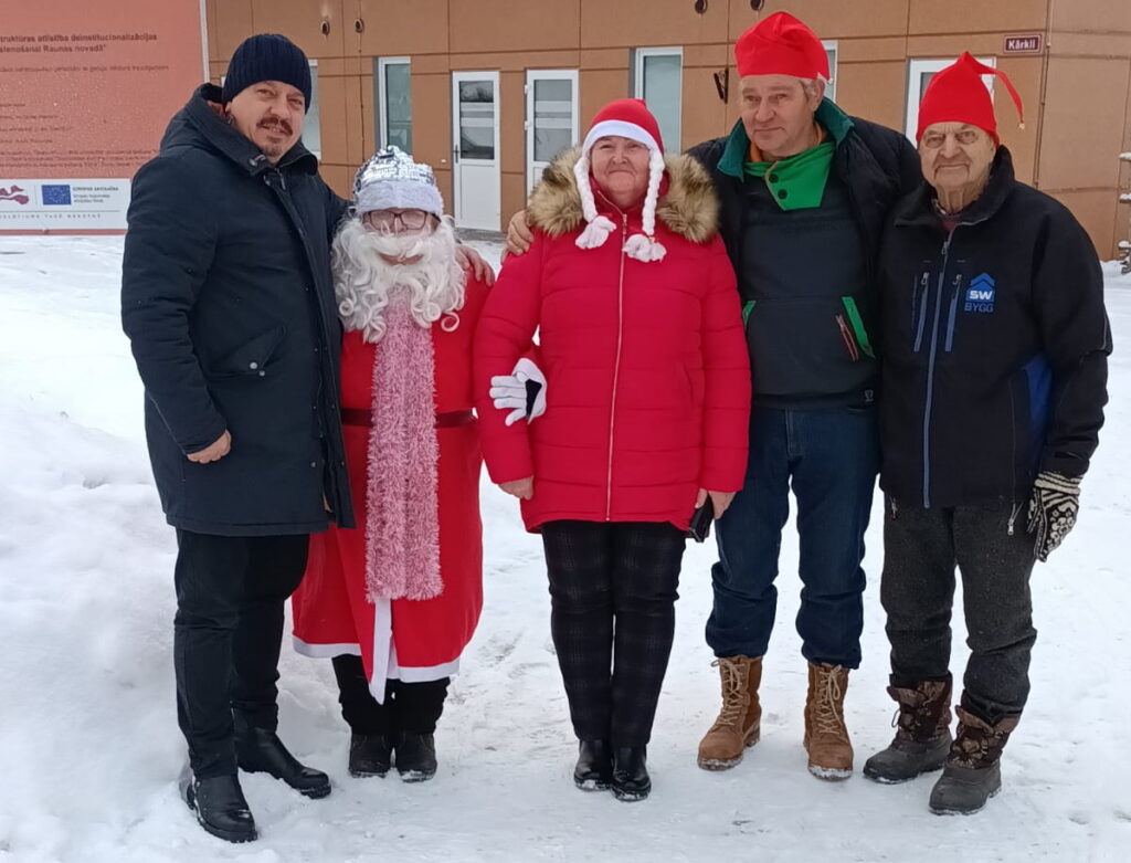 Tas, ka dāvanas to devēji paši arī pasniedz, pansionāta iemītniekiem, kuri dzīvo savā noslēgtā vidē, ir būtiski, tāpēc variņieši ciemos ieradās uz svētku eglītes sarīkojumu, kas notika šogad atvērtajā grupu dzīvokļu ēkā cilvēkiem ar garīga rakstura traucējumiem. Grupu dzīvokļi atrodas blakus Gatartas pansionātam, tajos šobrīd dzīvo astoņi iemītnieki. Turpat atrodas arī kokapstrādes un keramikas darbnīcas, kurās grupu dzīvokļu iemītnieki bija pagatavojuši rūpīgi izstrādātus dekorus – zvaigznes, ko uzdāvināja variņiešiem. “Lieli malači! Mums bija ļoti liels gandarījums saņemt viņu dāvanu,” piebilst Mārīte Rozīte.