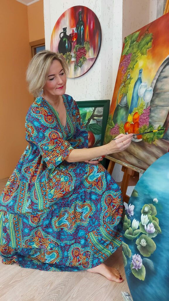 Liela Aivas aizraušanās ir gleznošana. Pie tās viņa nonākusi pirms sešiem gadiem. Kā pati saka, šis hobijs viņu aizrauj arvien vairāk un ievelk dziļāk. “Vienmēr esmu bijusi gana radoša, taču nekad dzīvē nebūtu domājusi, ka es varētu gleznot. Man pat nav atmiņu no skolas laika vizuālās mākslas stundām. Nezinu, ko mēs tur darījām. Patiesībā es nosapņoju, ka gleznoju un man viss sanāk. Savu sapni toreiz izstāstīju ģimenes locekļiem. Viņi man prasa, vai esmu mēģinājusi gleznot, es saku, ka neesmu gan. Esmu drīzāk piedzimusi ar kedām un bumbu rokās nekā ar krāsām un otiņām. Kaut kā šo sapni vīrs bija paturējis prātā un togad Ziemassvētkos man uzdāvināja molbertu ar krāsām. Skaisti! Sēdos klāt un pamēģināju, ko tas nozīmē. Sāku eksperimentēt ar krāsām, man kļuva interesanti, tik ļoti iepatikās šis process. Vispirms jau bija tikai abstrakti darbi. Bija daudz jāmācās, lai taptu kas vairāk. Gleznošana pamatīgi aizrāva, līdz ar to laika gaitā tapa arī pirmās gleznas, ko daudzi novērtēja. Ir jāpieliek arī zināmas pūles. Tā ir arī sava veida rakstura audzināšana – novest lietas līdz galam. Darbs netop vienā dienā, ja glezna iesākta, tā jāpabeidz,” saka Aiva, kura savos darbos galvenokārt ataino dabas skatus, ziedus, portretus un kluso dabu.