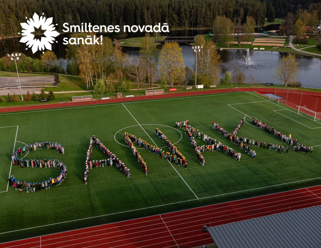 Viens no reprezentācijas videokadriem tika uzņemts Tepera stadionā, kur sanākušie Smiltenes novada pašvaldības darbinieki izveidoja vārdu “SANĀK!”, tādā veidā izceļot ikviena pašvaldības darbinieka ieguldījumu novada attīstības un labklājības veicināšanā. FOTO: AGNIS MELDERIS