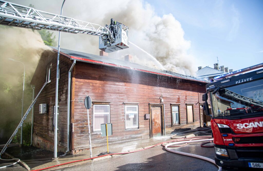 Glābēji trešdienas rītā tika izsaukti uz Lai ielu Valgā, kur divstāvu koka māja dega atklātās liesmās, informē “Lõuna-Eesti Postimees” reportieris Tīts Loims.