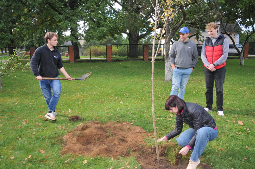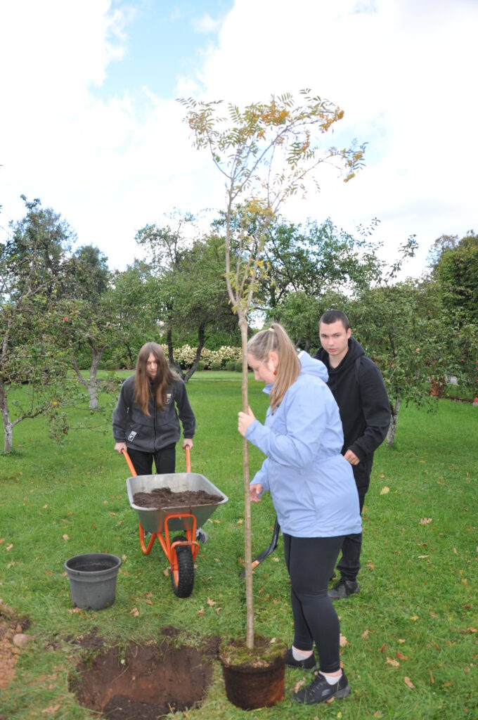 Skolas dārzā aug ābeles un tūjas. Turpmāk pavasaros ar baltiem ziediem, bet rudeņos ar sarkanu ogu čemuriem priecēs arī pīlādži.