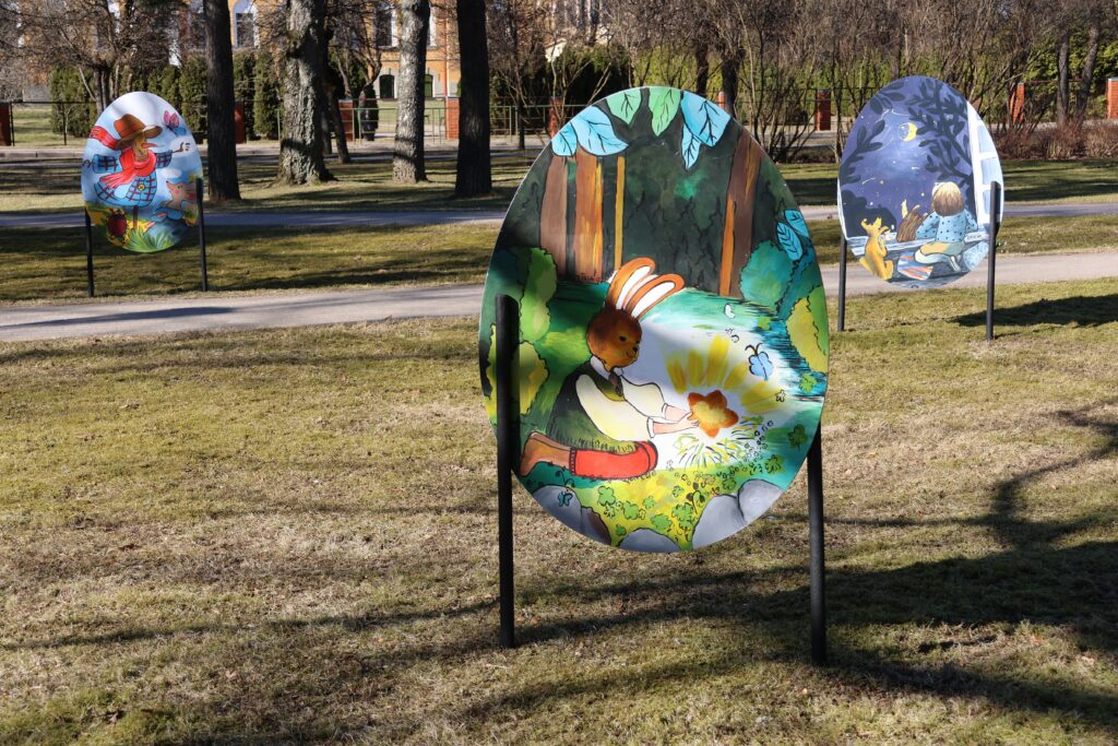 Lai pateiktu paldies Valkas Mākslas skolas 4. un 5. kursa audzēkņiem un pedagogiem Daigai Soloveiko-Lazdiņai un Annai Makarukai, trešdien, 1. aprīlī, pēcpusdienā notika Lugažu parkā izlikto Lieldienu olu āra izstādes “Pavasara elpa” atklāšana. Šopavasar bērni uz olām gleznoja 20 bērnu grāmatu ilustrāciju kopijas.
