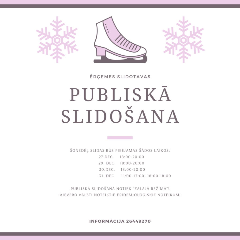 2021.gada atlikušajās dienās slidot gribētāji tiek aicināti uz Ērģemes slidotavas publisko slidošanu.