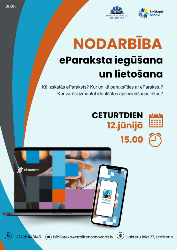 Kā iegūt eParakstu? Kur un kā parakstīties ar eParakstu? Kur varēsi izmantot identitātes apliecināšanas rīkus? Atbildes uz šiem jautājumiem varēs noskaidrot Smiltenes novada bibliotēkā ceturtdien, 12.jūnijā plkst.15.00 nodarbībā “eParaksta iegūšana un lietošana”. Nodarbība paredzēta visiem interesentiem, kuri tikai sāk lietot eParaksta rīkus.