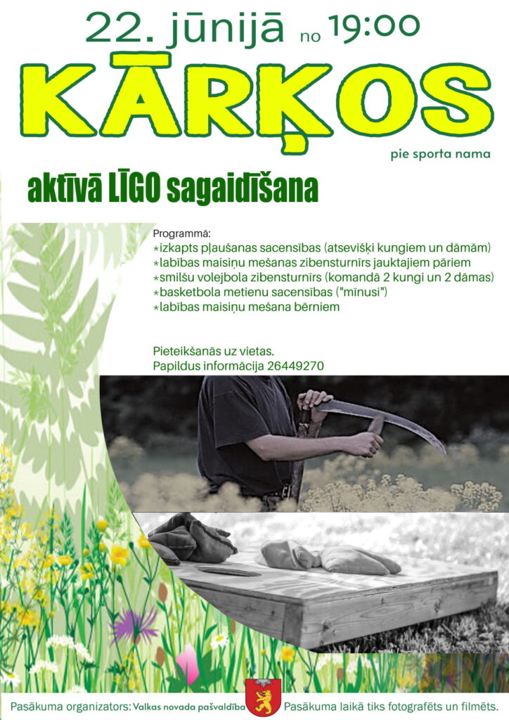 Līgo svētku priekšvakarā, 22.jūnijā, Kārķos atkal norisināsies tradicionālās izkapts pļaušanas sacīkstes un citas aktivitātes, lai iesildītos lustīgai līgošanai.