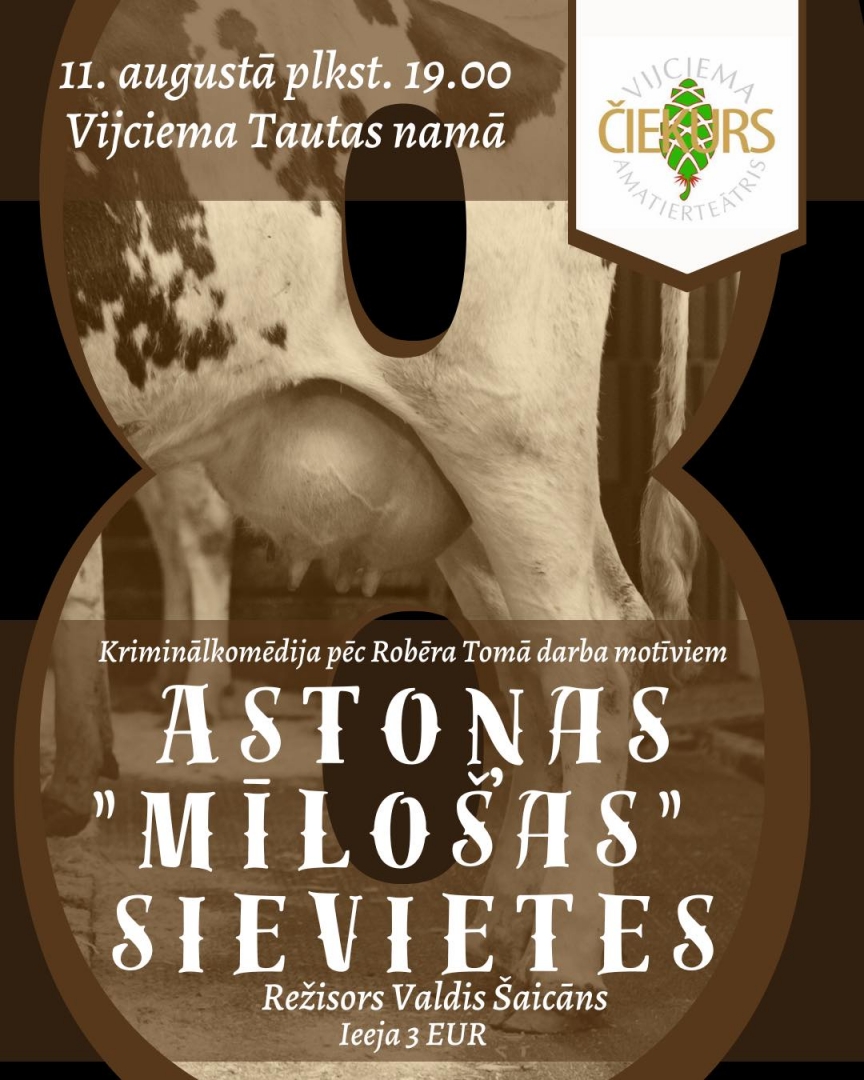 11. augustā plkst. 19.00 Vijciema tautas namā Amatierteātra “Čiekurs” pirmizrāde. R.Tomā “Astoņas mīlošas sievietes”. Režisors V. Šaicāns. Ieeja 3 eiro.