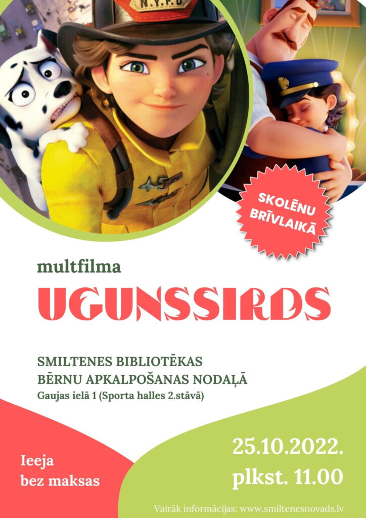 Skolēnu rudens brīvdienu nedēļas otrdienā – 25.oktobrī – plkst. 11.00 sanāksim uz Smiltenes bibliotēkas Bērnu apkalpošanas nodaļu (Gaujas ielā 1, Sporta halles 2.stāvā), kur būs iespēja noskatīties animācijas filmu “Ugunssirds”.