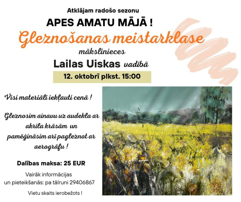 Vairāk informācijas un pieteikšanās: pa tālruni 29406867