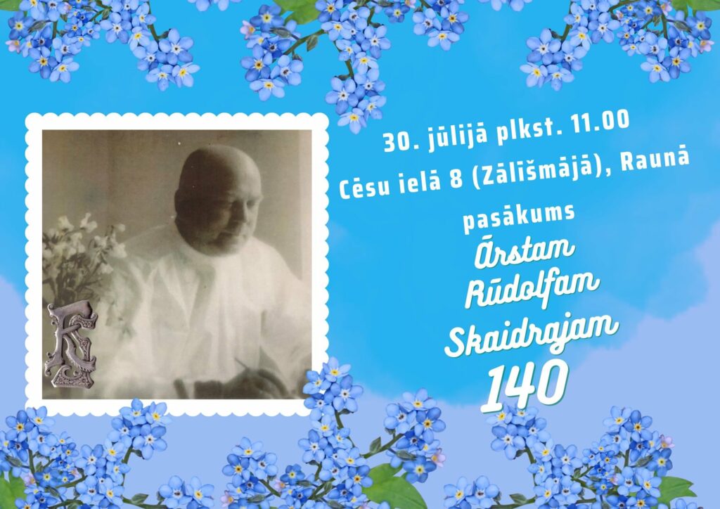Jau šajā sestdienā, 30. jūlijā, plkst. 11.00 Cēsu ielas 8 īpašnieki un ārsta Rūdolfa Skaidrā piemiņas turētāji, sadarbībā ar Raunas pagasta kultūras iestādēm, aicina uz ārsta Rūdolfa Skaidrā 140. dzimšanas dienai veltītu piemiņas pasākumu!