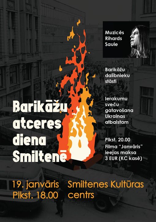 19.janvārī plkst. 18.00 Smiltenes Kultūras centrā norisināsies barikāžu atceres dienai veltīts pasākums. Vakara programmā muzicēs Rihards Saule un būs dzirdami barikāžu dalībnieku stāsti. Ieeja bez maksas.