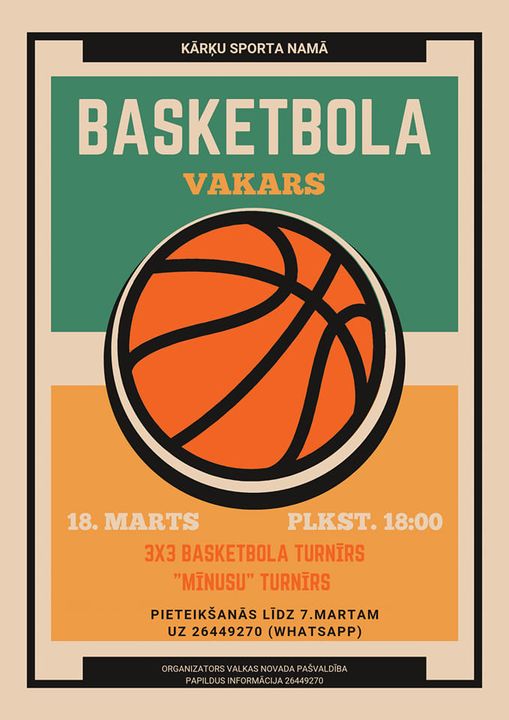 18.martā visi laipni aicināti uz basketbola vakaru Kārķu sporta namā!