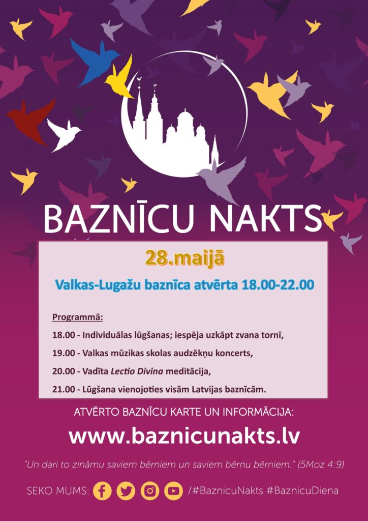 Sestdien, 28. maijā, Valkas-Lugažu ev. lut. baznīcā no plkst. 18.00 līdz 22.00 norisināsies Baznīcu nakts.