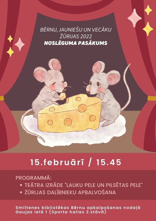 Smiltenes bibliotēka 15.februārī plkst. 15.45 aicina “Bērnu, jauniešu un vecāku žūrijas 2022” dalībniekus, kuri lasījuši kolekcijas grāmatas Smiltenes bibliotēkā un Bērnu apkalpošanas nodaļā, uz noslēguma pasākumu.