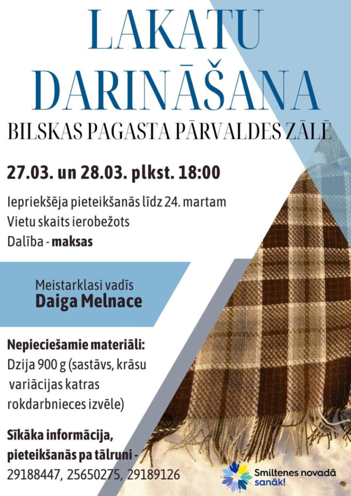 Sīkāka informācija, pieteikšanās pa tālruni: 29188447 vai 25650275