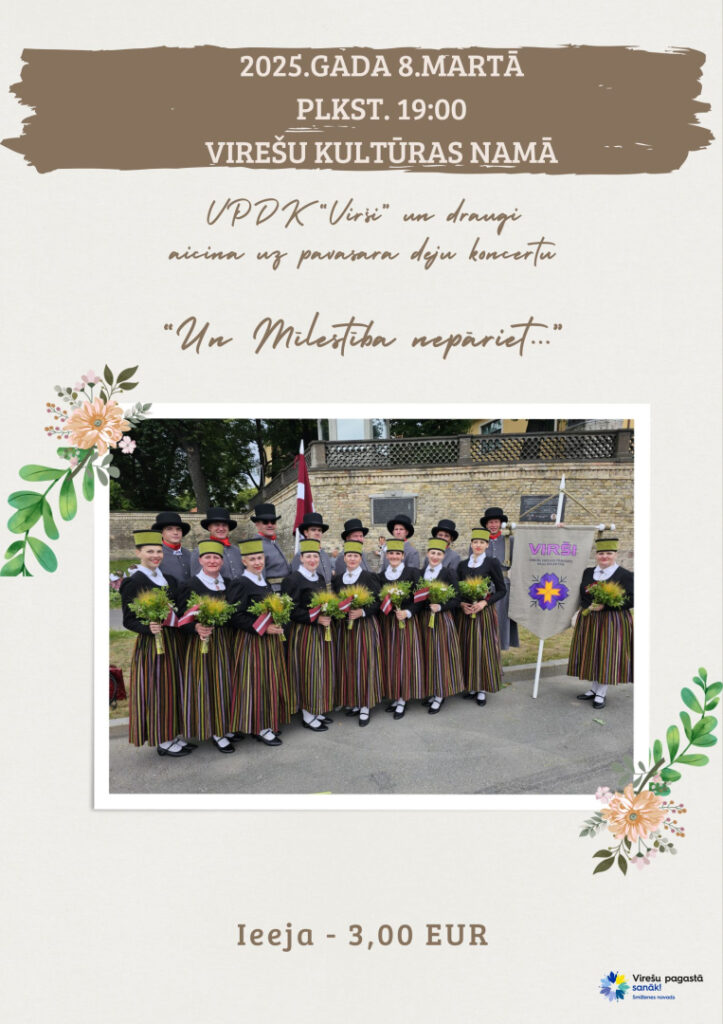8. martā plkst. 19.00 Deju kolektīvu sadancis “Un Mīlestība nepāriet!” – ieeja – 3,00 EUR. Plkst. 21.30 balle ar grupu “Starpbrīdis” – ieeja – 7,00 EUR